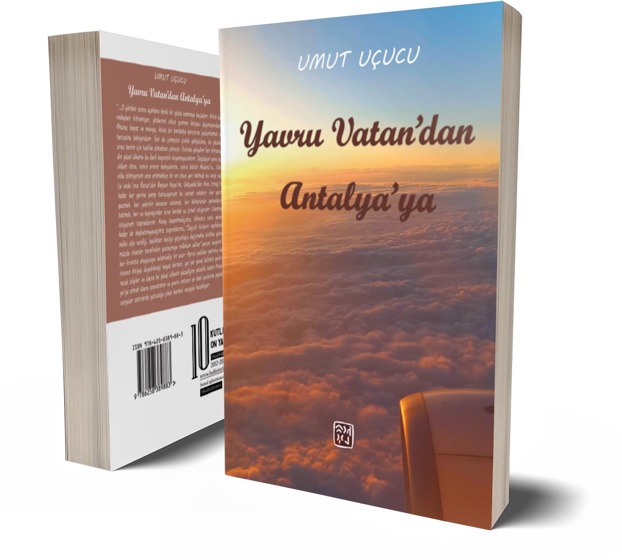 ‘’…O günden sonra uçaklara farklı bir gözle bakmaya başladım. Artık havadayken titremiyor, gözlerimi sıkıca yumma ihtiyacı duymuyordum. Aksine; beyaz ve maviye, ikisini bir bardakta karıştırıp yudumlamak istercesine bakıyordum. Sen de çıkmıştın çünkü gökyüzüne, bu yüzden orası benim için tehlike olmaktan çıkmıştı. Evimde gibiydim. Sen olmasaydın güzel ülkeme bu denli hayranlık duyamayacaktım. Doğduğun yere aşık oldum önce, sonra oranın komşularına, sonra bütün Akdeniz’e… Nasıl oldu bilmiyorum ama artmaktan bir an olsun geri kalmadı bu sevgi seli. Şu anda İnce Burun’dan Beysun Koyu’na, Gökçeada’dan Aras Irmağı’na kadar her yerine yanıp tutuşuyorum bu cennet vatanın. Her yerini gezmek, her şehrinin havasını solumak, her kültürünün yemeklerini tatmak, her su kaynağından birer bardak su içmek istiyorum. Uzanmak istiyorum topraklarına. Kolay kazanmadığımız, kâinatın sonu gelene kadar da kaybetmeyeceğimiz topraklarına…’’Değişik türlerin sayfalarda nefes alıp verdiği, başlıktan başlığa yoğunluğu değişmekle birlikte günümüzde insanlar tarafından yozlaşmaya mâhkum edilen ‘’gerçek sevginin’’ her fırsatta okuyucuyu selamladığı bir eser. Ayrıca yediden yetmişe her insanın ihtiyaç duyabileceği hayat dersleri, yer yer genel kültürü geliştirecek bilgiler ve başta bu güzel ülkenin güzelliğine güzellik katan Antalya’ya olmak üzere anavatanın ve yavru vatanın en özel yerlerine yapılan vurgular satırlarda yolculuğa çıkan herkesi sevgiyle kucaklıyor.